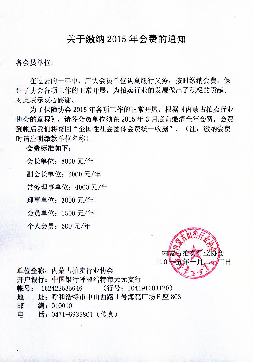 关于缴纳2015年会费的通知