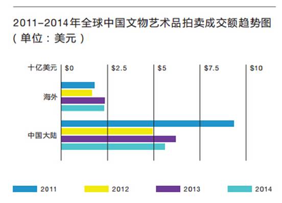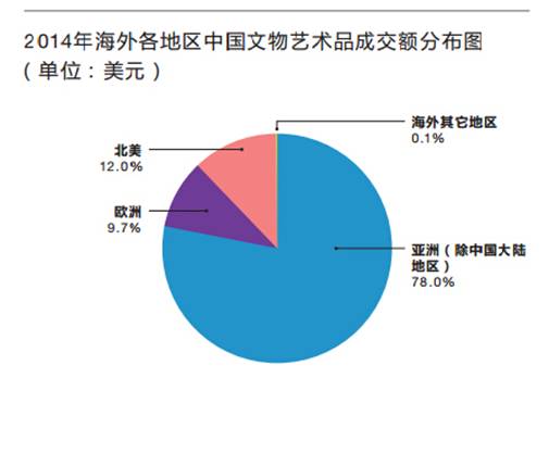 2014年全球中国文物艺术品拍卖市场再度下行 成交率创五年来新低 ——北美取代欧洲,跃居海外中国文物艺术品拍卖第二大市场,仅次于亚洲