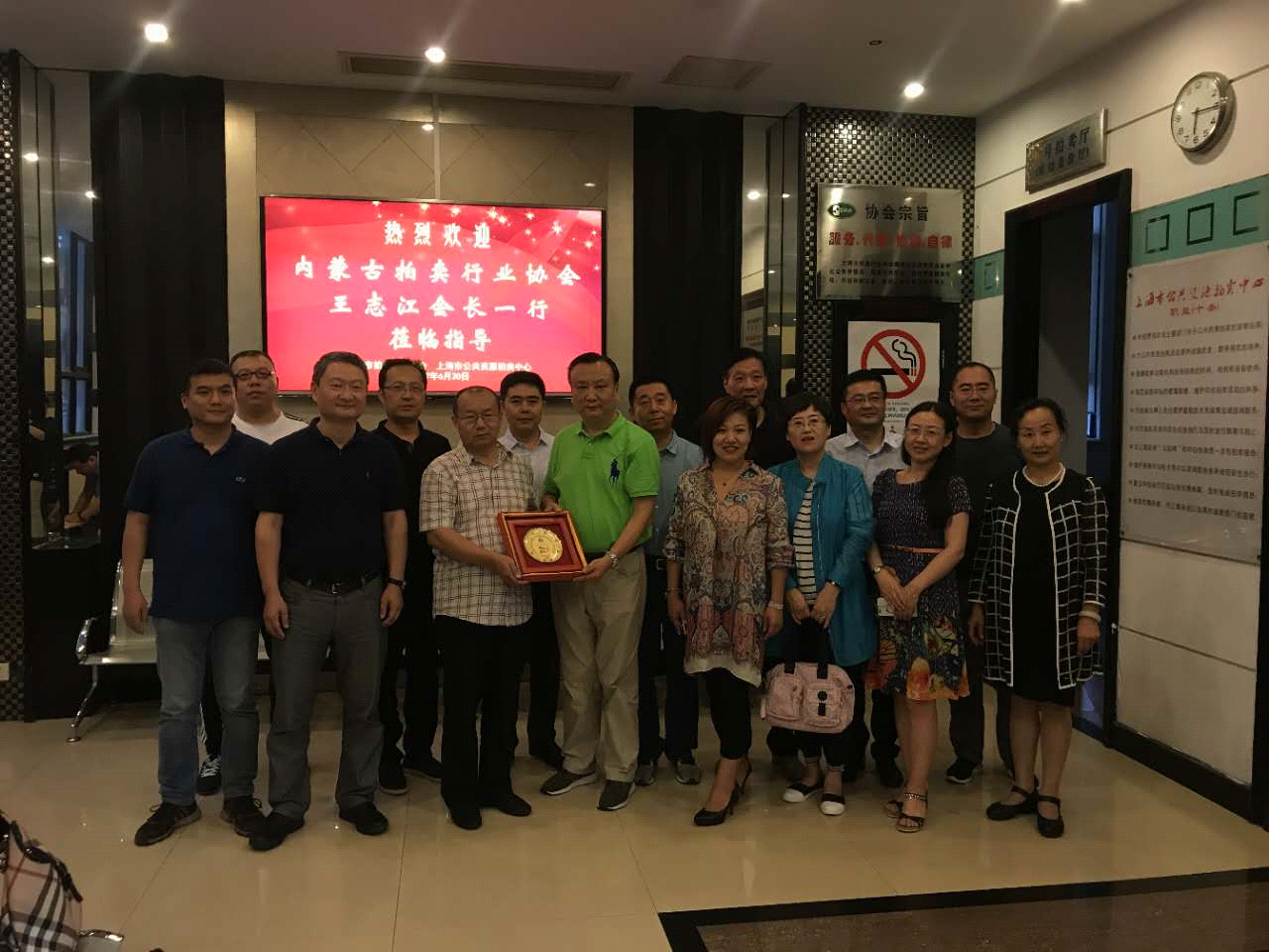 6月30日下午,考察组来到上海拍卖行业协会和上海市公共资源拍卖中心。中国拍卖行业资深专家、拍卖理论家、上海拍卖行业协会拍卖研究中心执行主任范干平和上海拍协部分领导:常务副会长何继俊、副会长吴长文、副秘书长魏锋年热情接待了考察组一行,考察组首先参观了上海拍卖行业协会和上海市公共资源中拍卖中心,然后考察组与上海拍协的部分领导、上海典型骨干拍卖企业负责人在上海拍协会议室举行了座谈会。上海拍协的常务副会长何继俊介绍了上海拍协的组成情况和近几年的运行情况;副会长吴长文和魏锋年副秘书长分别介绍了上海司法拍卖和公共资源拍卖等方面开展情况;范干平老师就司法拍卖、农产品拍卖、民品拍卖、联合拍卖等问题首先从理论到拍卖实践进行深刻了分析,然后讲解了他们在实践过程中总结出来的经验和方法,同时给内蒙古的拍卖同行提出了非常好的意见和建议,考察组的同志们都深受启发。