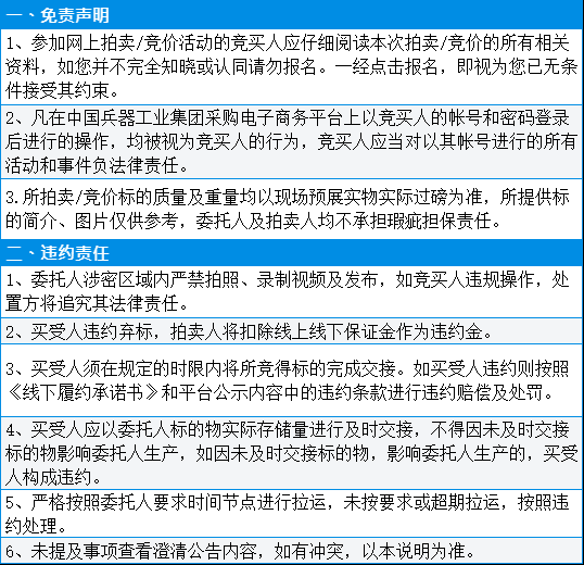 受企业委托,我公司定于2023年12月11日9:00-9:30在中国兵器工业集团采购电子商务平台(http://www.norincogroup-ebuy.com/)公开网络竞价。