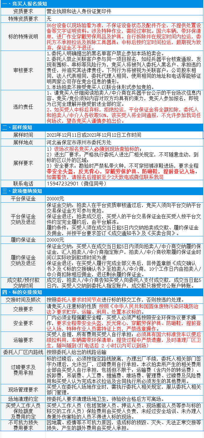 有意竞买者需开通中国兵器工业集团采购电子商务平台帐号进行报名及缴纳线上保证金。所竞价标的:报废设备一批,起拍价192006元/批,数量为1批。