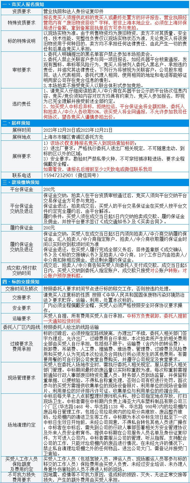 有意竞买者需开通中国兵器工业集团采购电子商务平台帐号进行报名及缴纳线上保证金。所竞标的:塑料循环周转料箱,起拍价:2元/千克,预估重量为788.8千克。