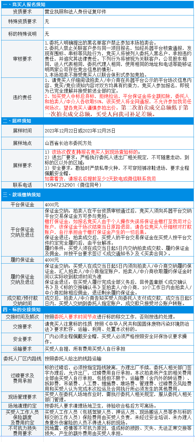 受企业委托,我公司定于2023年12月26日14:30-15:00在中国兵器工业集团采购电子商务平台(https://wm.norincogroup-ebuy.com/index.do)进行公开网络竞价。