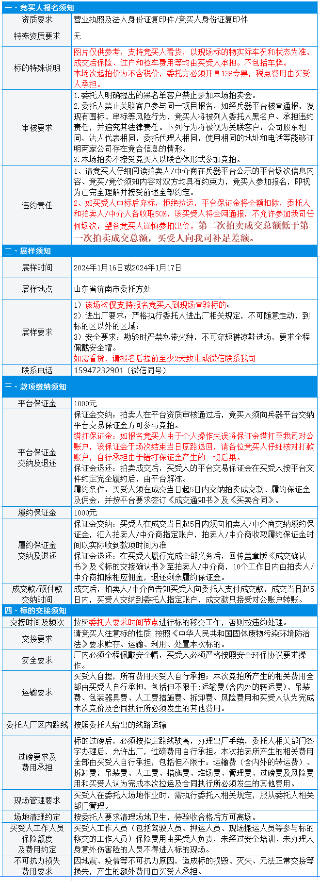 受企业委托,我公司定于2024年1月18日10:00-10:30在中国兵器工业集团采购电子商务平台进行公开网络竞价。