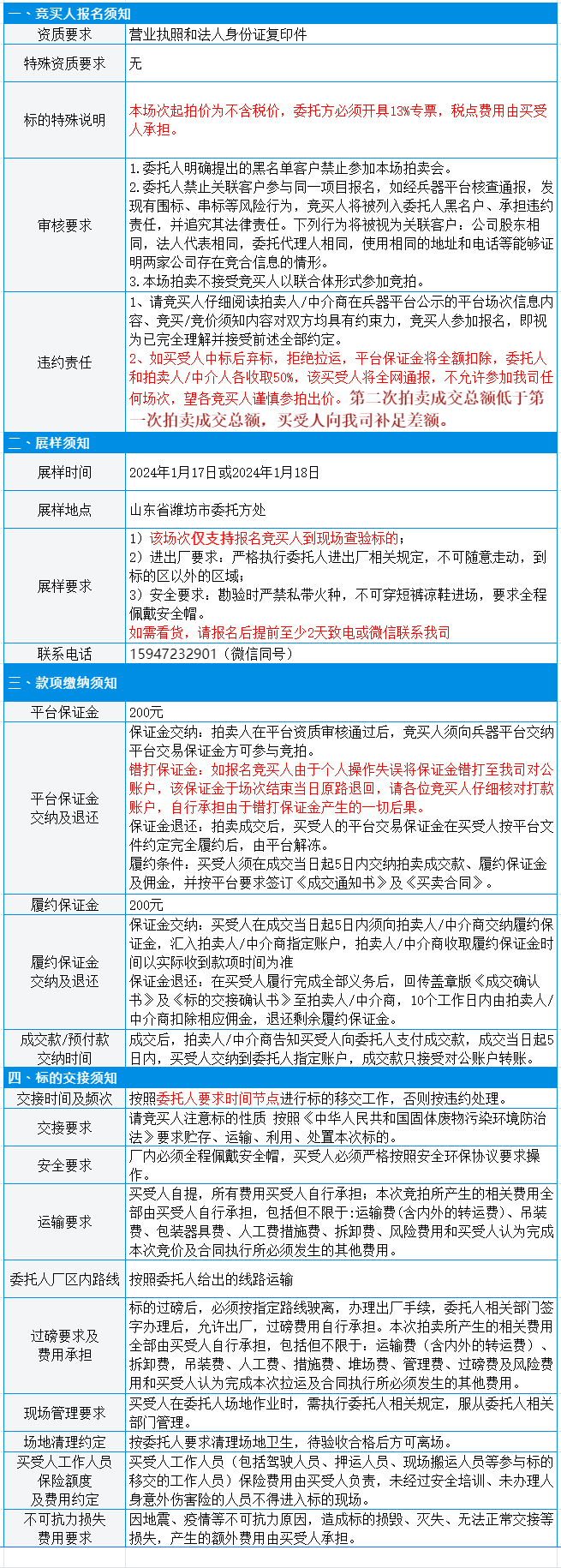 受企业委托,我公司定于2024年1月19日15:00-15:30在中国兵器工业集团采购电子商务平台进行公开网络竞价。