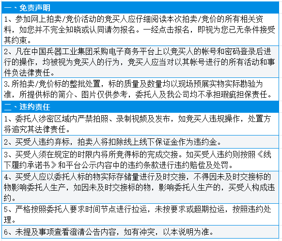 有意竞买者需开通中国兵器工业集团采购电子商务平台帐号进行报名及缴纳线上保证金。所竞价标的:报废电脑及打印机,起拍单价:1976.2元/批(有保留价),整包处置,标的质量及数量均以现场预展实物实际勘验为准,所提供标的简介、图片仅供参考。