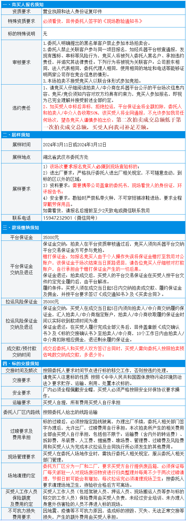 有意竞买者需开通中国兵器工业集团采购电子商务平台帐号进行报名及缴纳线上保证金。所竞价标的:废旧模具夹具,起拍单价2530元/吨,预估重量130吨,标的质量及重量均以现场预展实物实际过磅为准,所提供标的简介、图片仅供参考,委托方及我公司均不承担瑕疵担保责任。