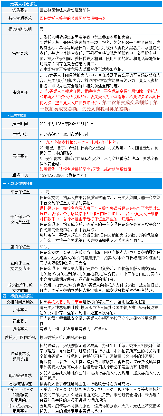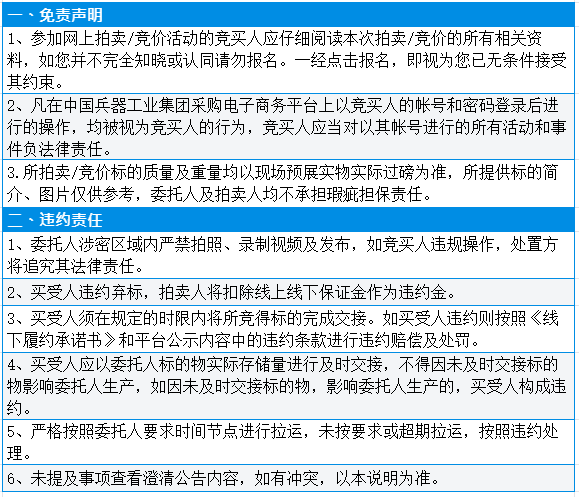 受企业委托,我公司定于2024年5月27日在中国兵器工业集团采购电子商务平台(http://www.norincogroup-ebuy.com/)进行公开网络竞价。 有意竞买者需开通中国兵器工业集团采购电子商务平台帐号进行报名及缴纳线上保证金。所竞标的: