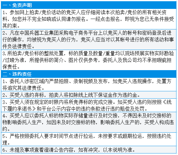 有意竞买者需开通中国兵器工业集团采购电子商务平台帐号进行报名及缴纳线上保证金。 所拍卖标的: