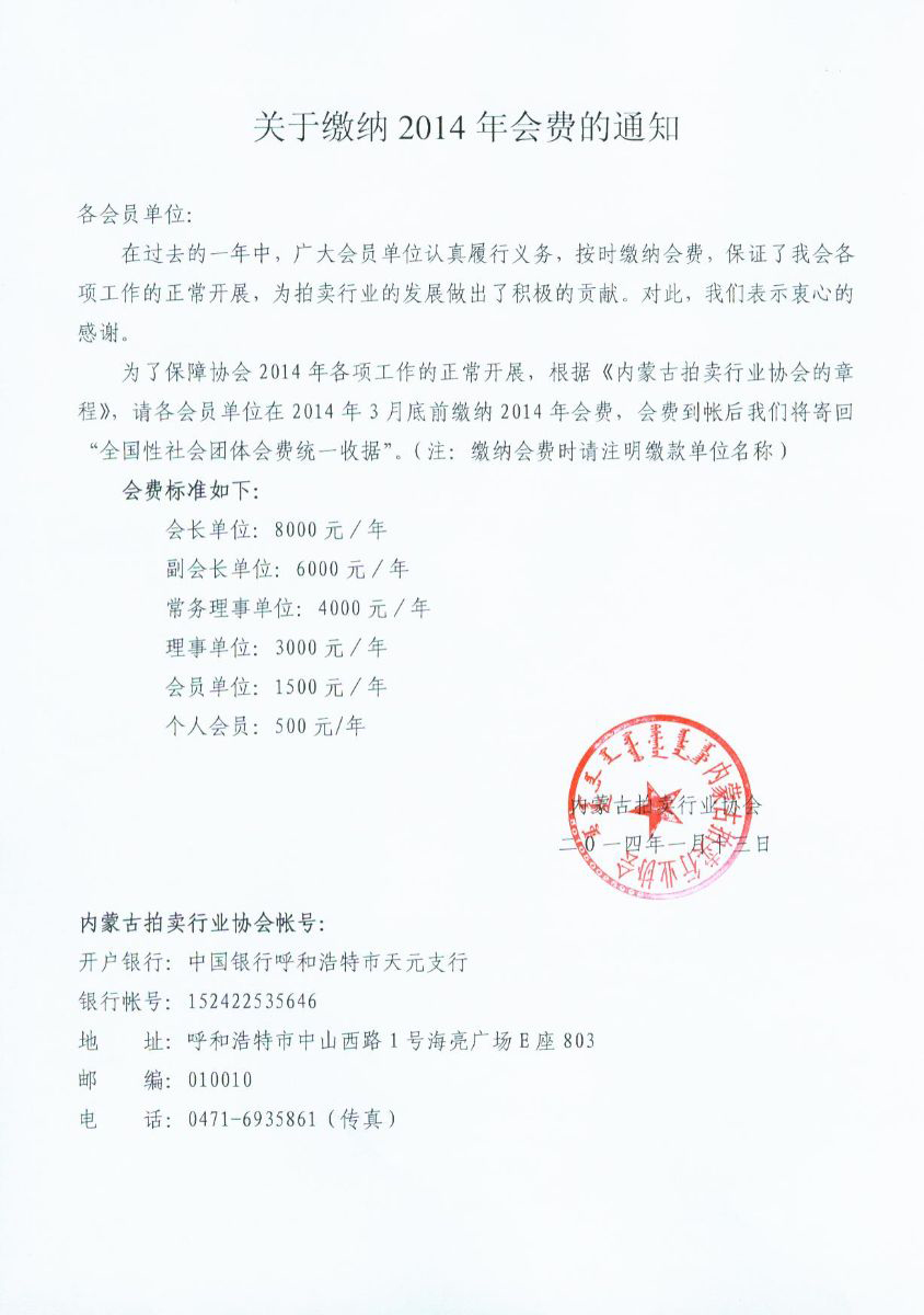 关于缴纳2014年会费的通知