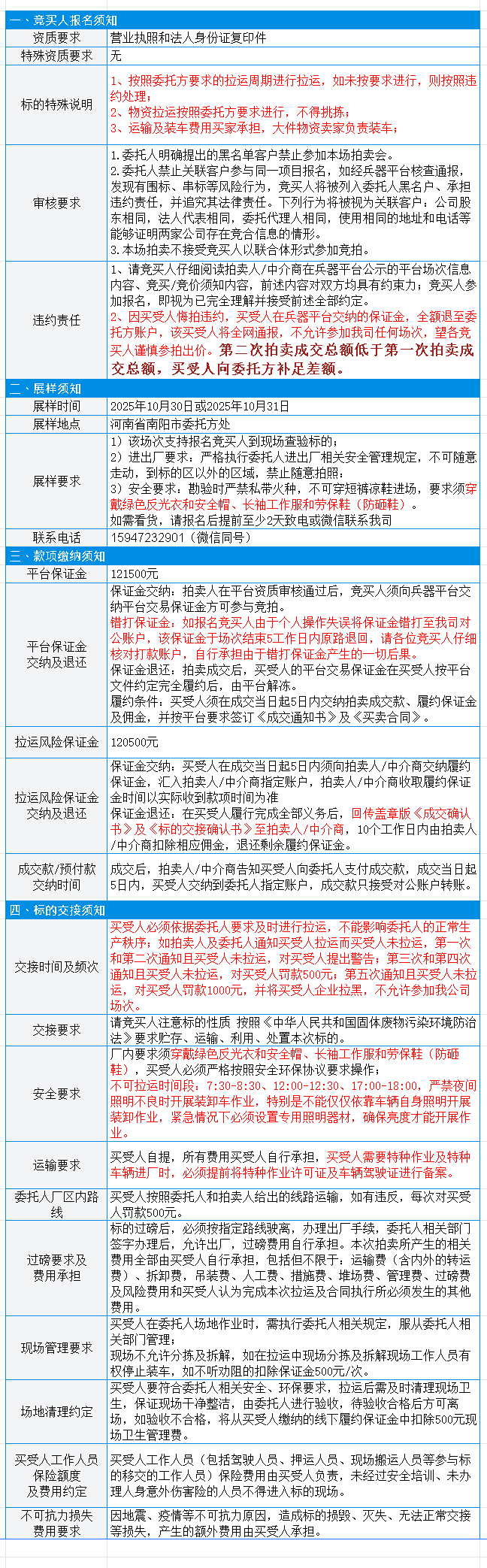 受企业委托,我公司定于2025年11月4日 在中国兵器工业集团采购电子商务平台(http://www.norincogroup-ebuy.com/)进行公开网络拍卖。